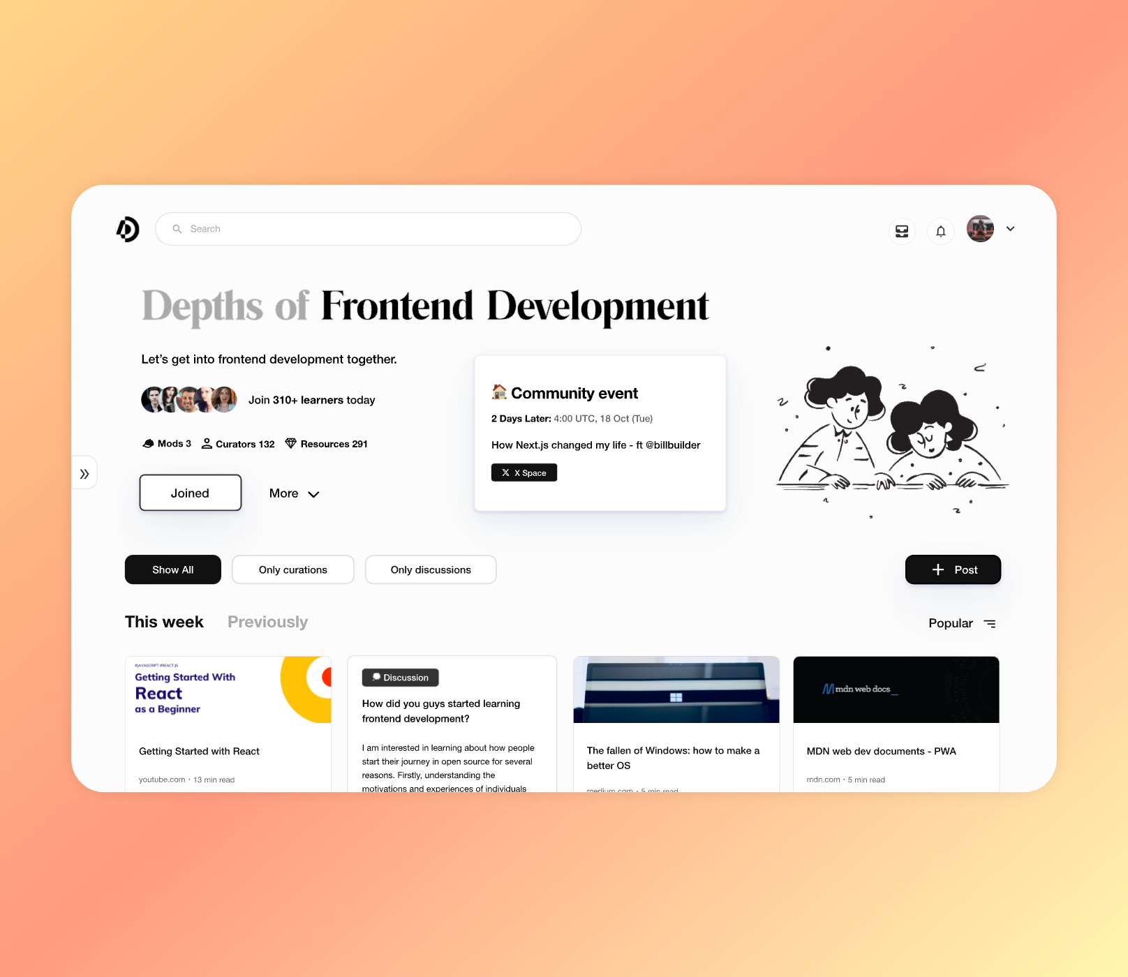 A Group is a place to **share useful resources on the same topic** with global learners. It is made for like-minded people to gather around and learn the same topic together.
